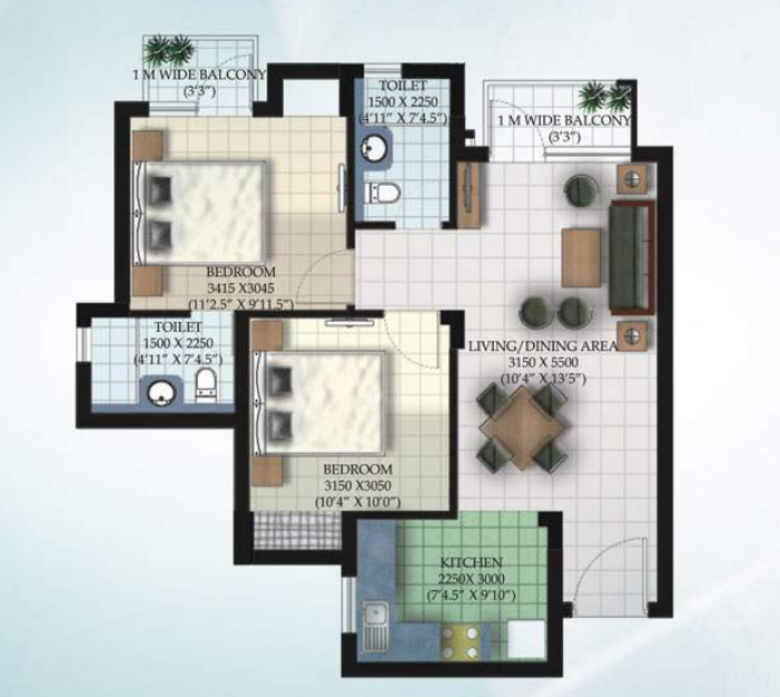 2 BHK | 1025 Sq.ft. | On Request | On Request | On Request | |