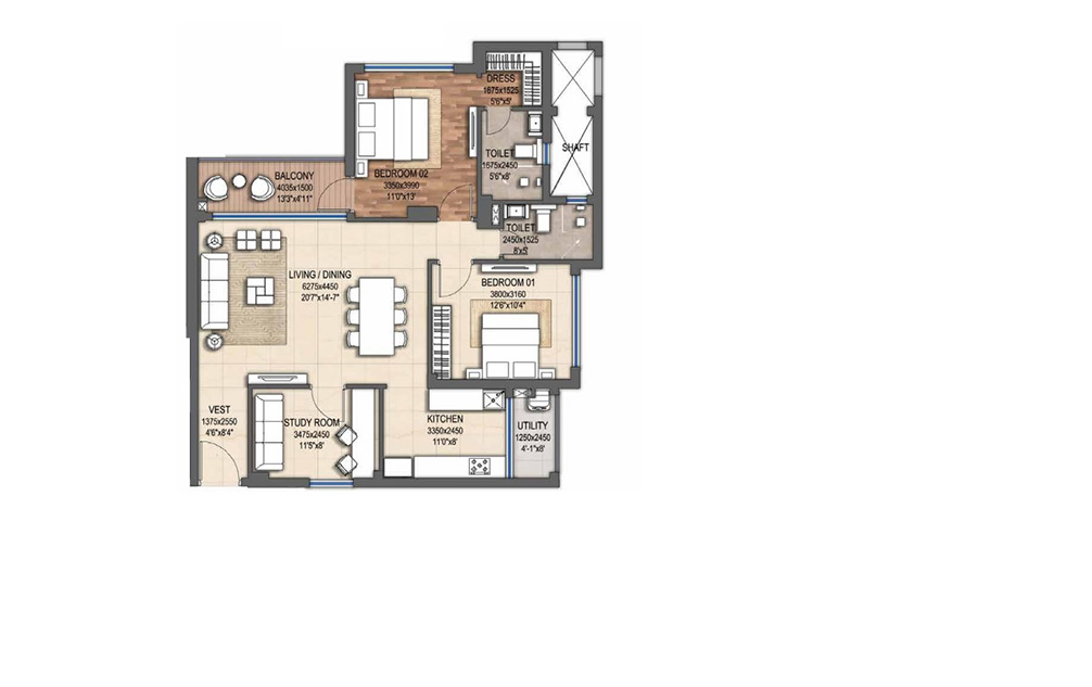 2 BHK | 964 Sq.ft. | On Request | On Request | On Request | |