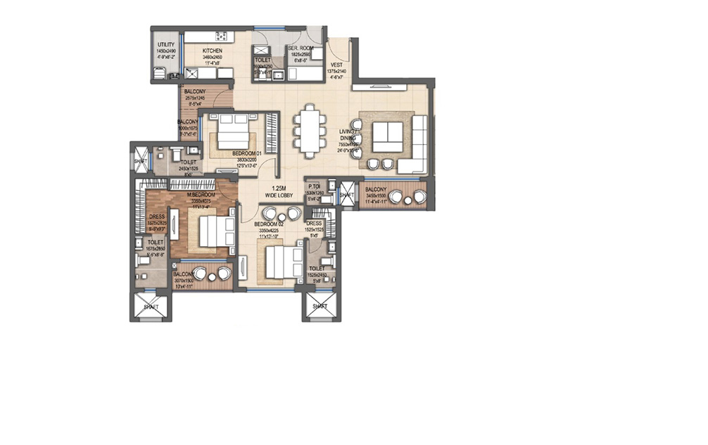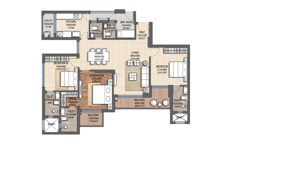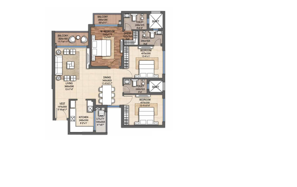3 BHK | 1168 Sq.ft. | On Request | On Request | On Request | |