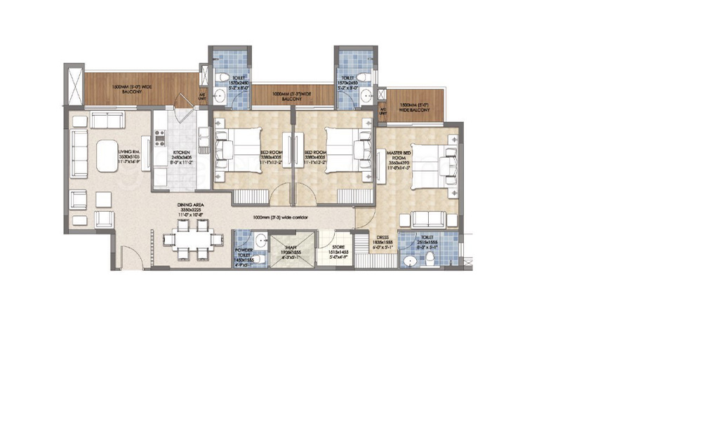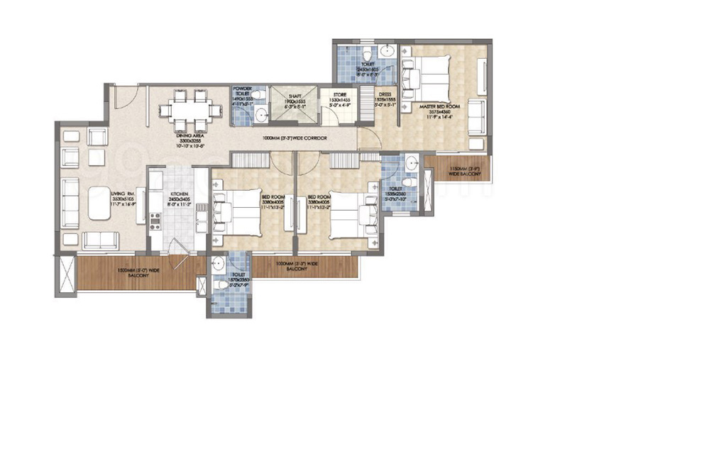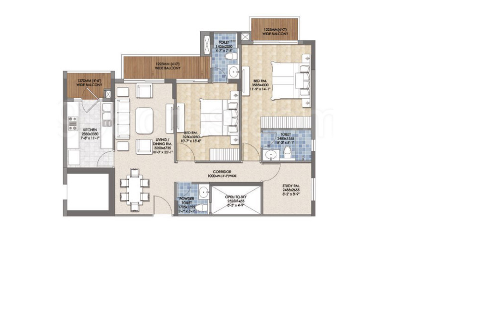 3 BHK | 1220 Sq.ft. | On Request | On Request | On Request | |