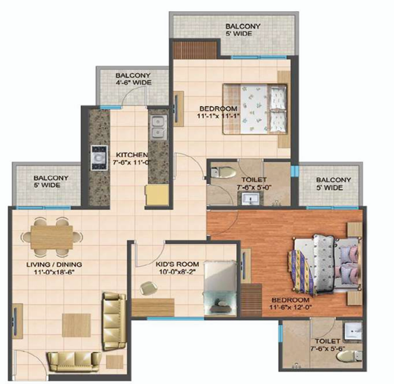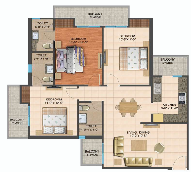 3 BHK | 1050 Sq.ft. | On Request | On Request | On Request |