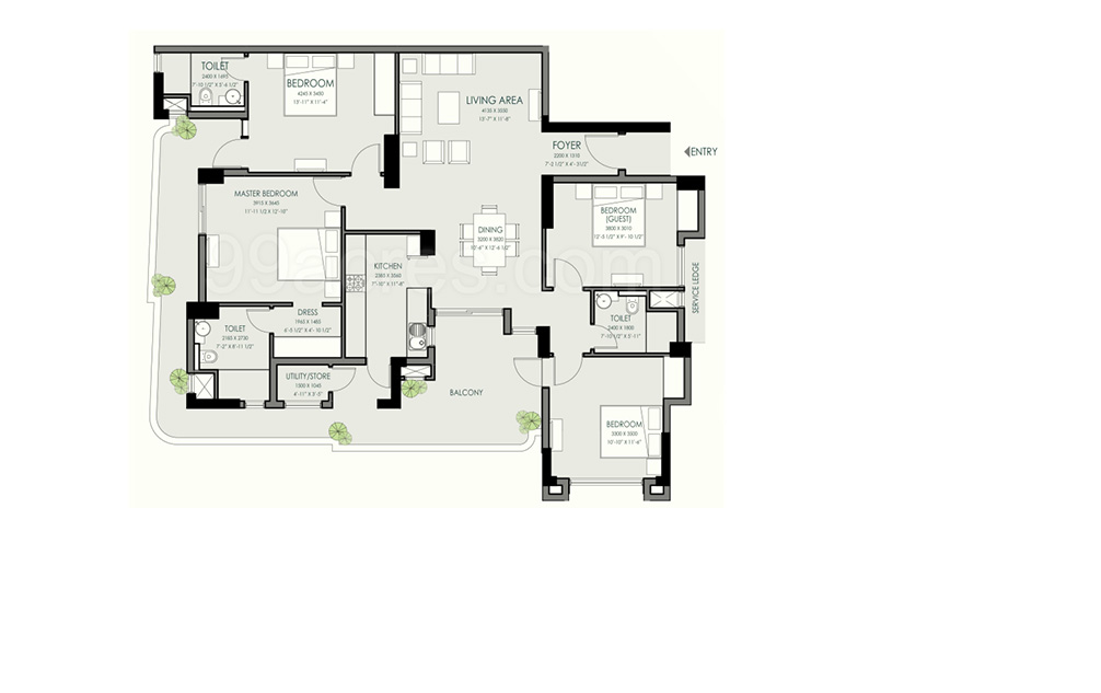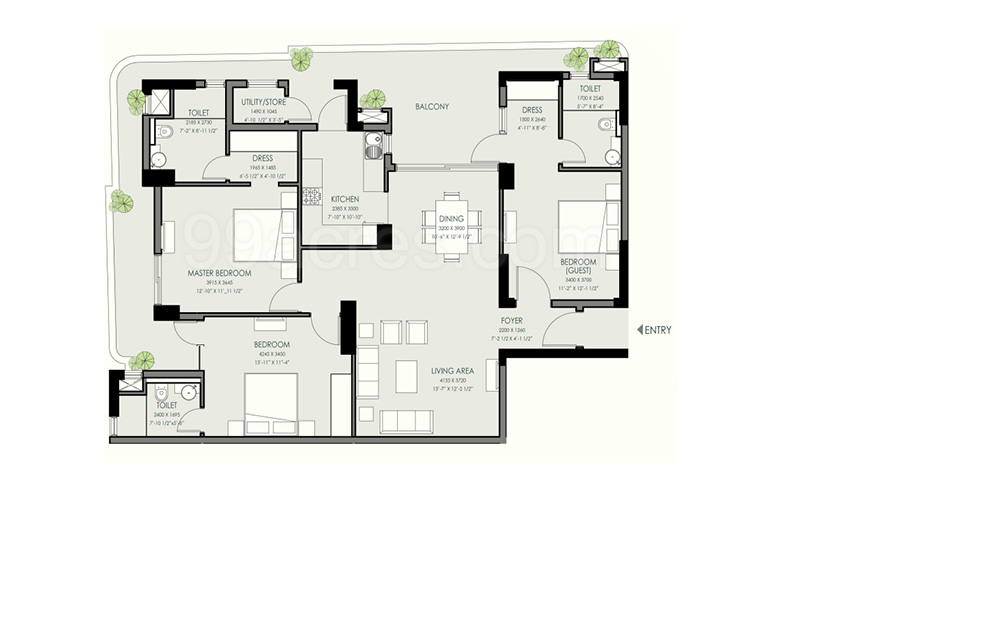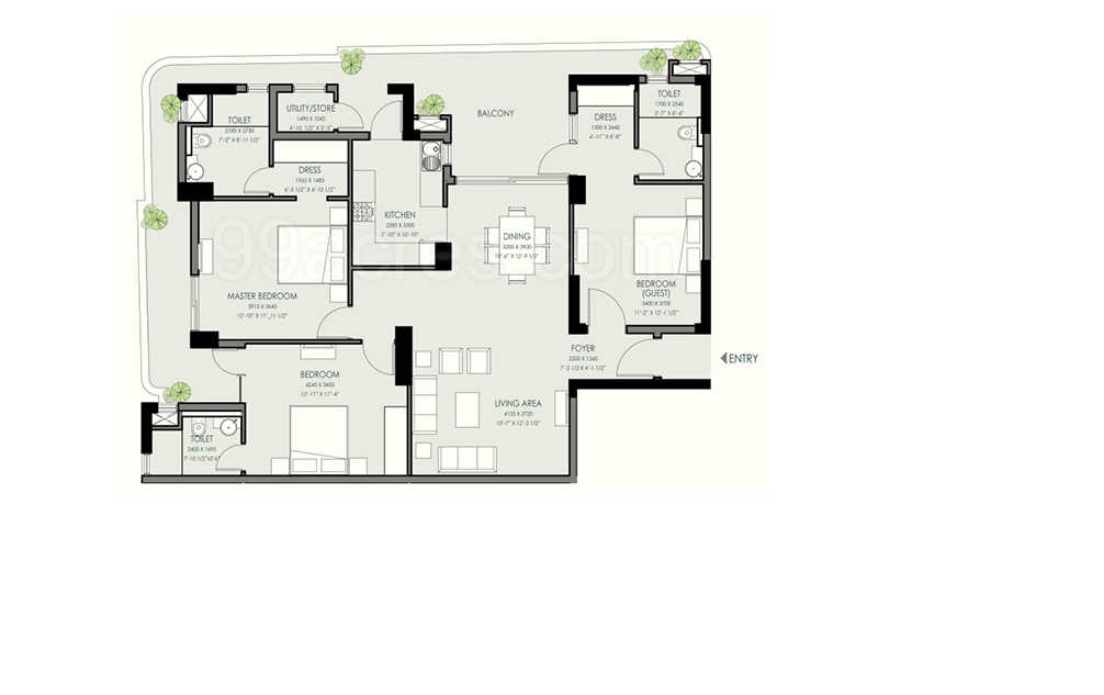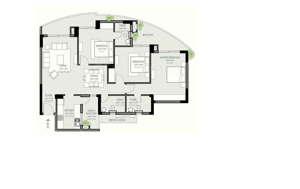 3 BHK | 1222 Sq.ft. | On Request | On Request | On Request | |