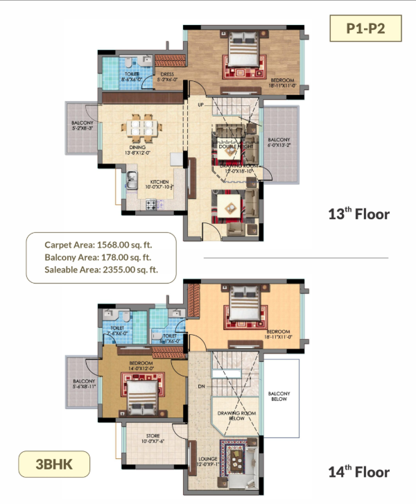 3 BHK | 2355 Sq.ft. | On Request | On Request | On Request | |