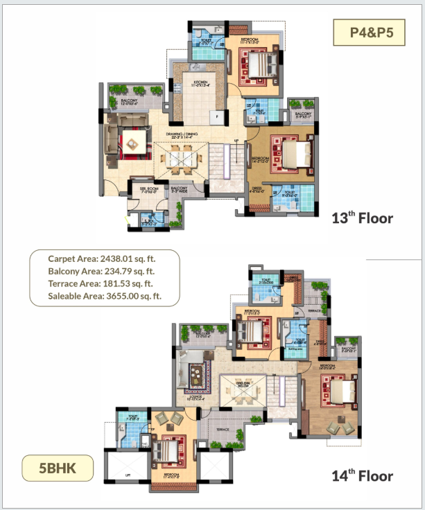 5 BHK | 3655 Sq.ft. | On Request | On Request | On Request | |