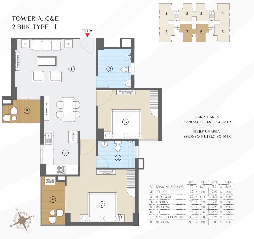 2 BHK | 734 Sq.ft. | On Request | On Request | On Request | |