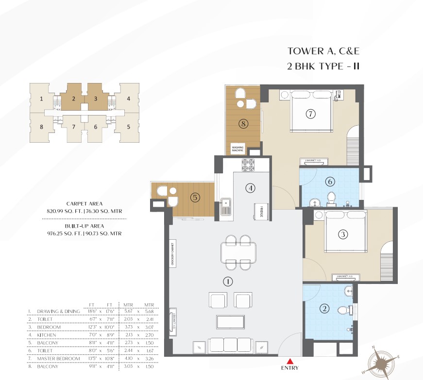 2 BHK | 820 Sq.ft. | On Request | On Request | On Request | |