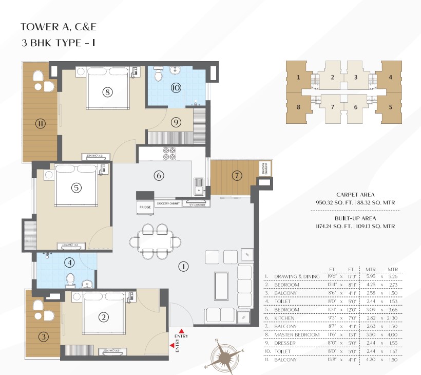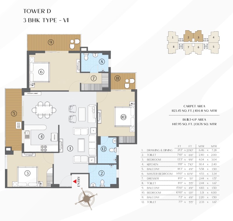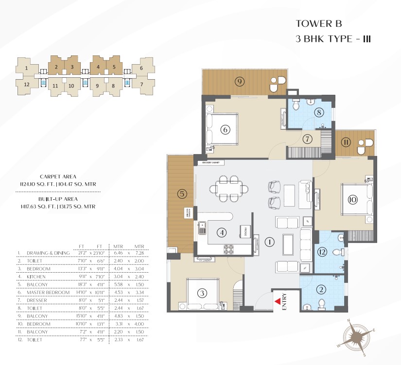 3 BHK | 1123 Sq.ft. | On Request | On Request | On Request | |