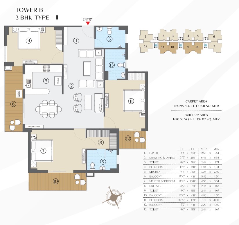 3 BHK | 1132 Sq.ft. | On Request | On Request | On Request | |