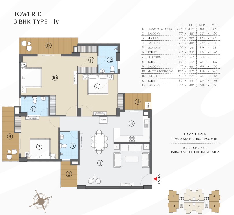 3 BHK | 1186 Sq.ft. | On Request | On Request | On Request | |