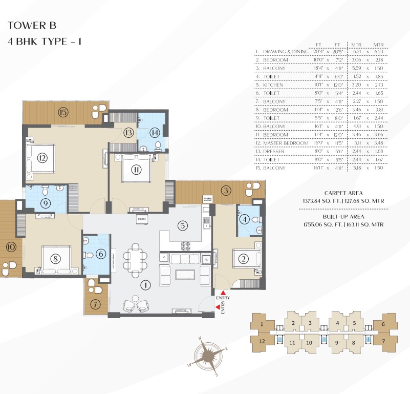 4 BHK | 1373 Sq.ft. | On Request | On Request | On Request |