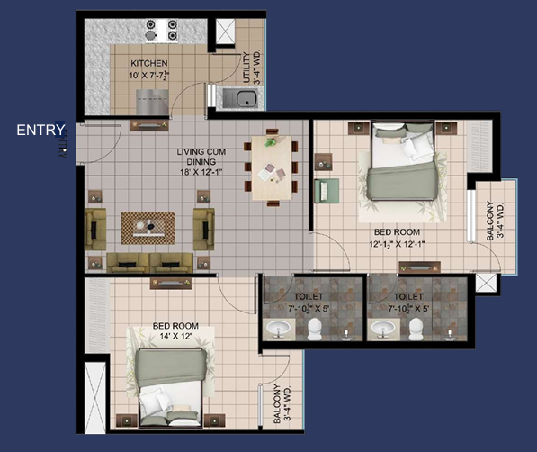 3 BHK | 1800 Sq.ft. | On Request | On Request | On Request |
