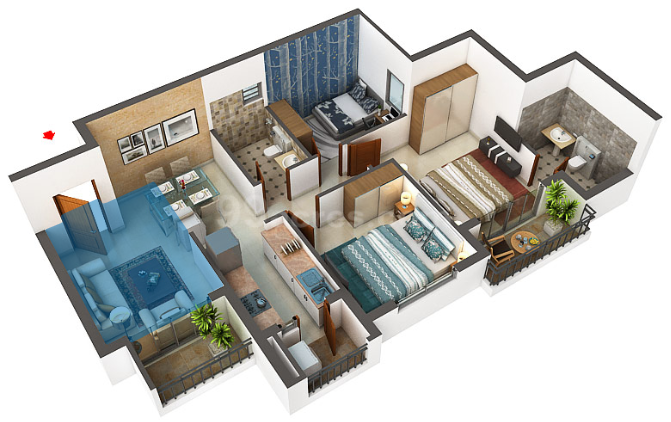 3 BHK | 1695 Sq.ft. | On Request | On Request | On Request |