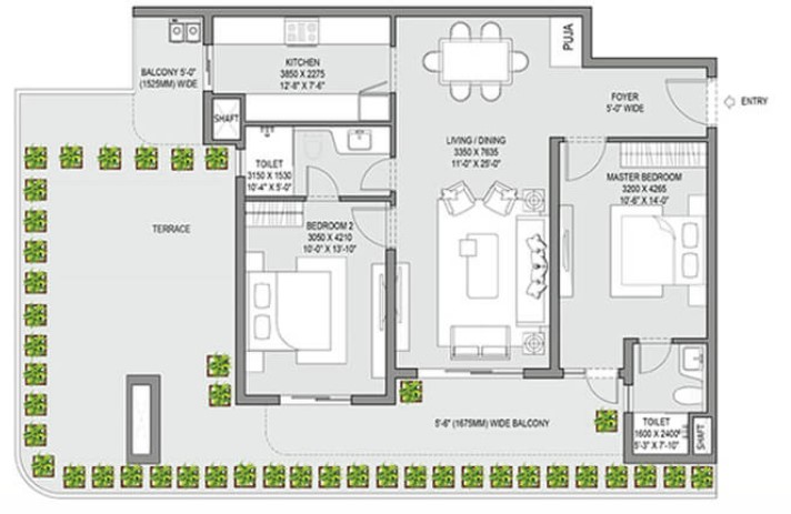 2 BHK | 852 Sq.ft. | On Request | On Request | On Request | |