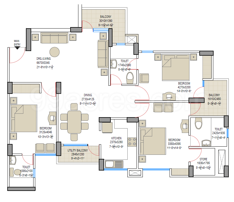 3 BHK | 1695 Sq.ft. | On Request | On Request | On Request | |
