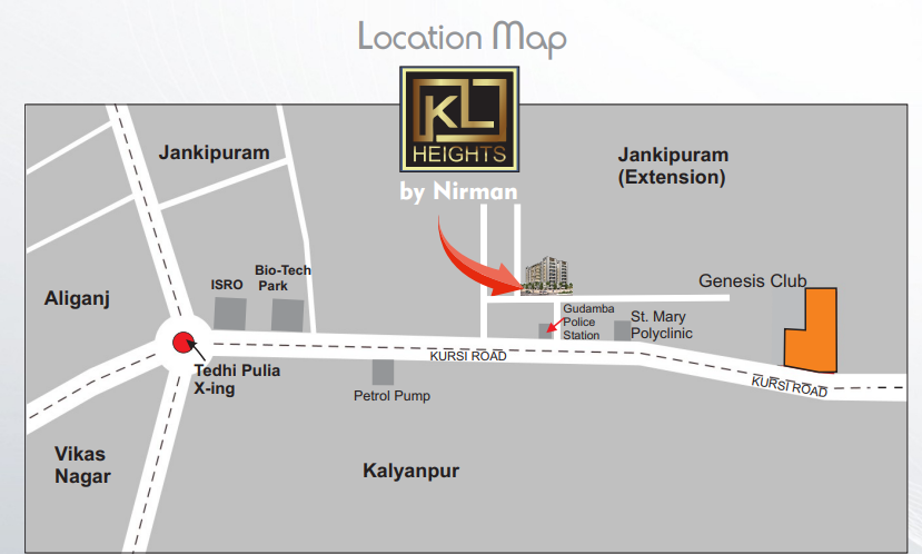 Jankipuram in Lucknow is home to prime residential project K L Heights, it is launched by real estate company Nirman Lucknow. The project will be built on an area of 0.79 acres and is offering comfortable, spacious and well-constructed 2 and 3 BHK apartments for sale. Carpet area of 2 BHK apartments is 756 sq f. and for 3 BHK apartments it is 958 sq ft. Amenities available for the convenience of residents are car parking areas, lifts, power backup, electrification like transformer, solar ener...