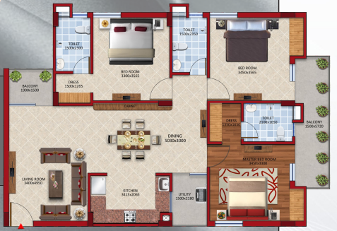 3 BHK | 1595 Sq.ft. | On Request | On Request | On Request |