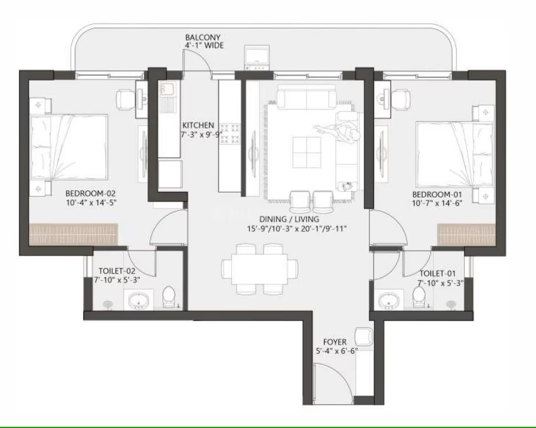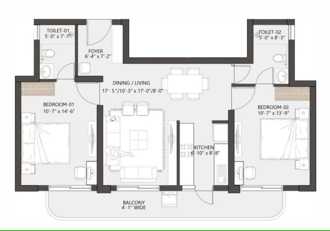 2 BHK | 1320 Sq.ft. | On Request | On Request | On Request | |