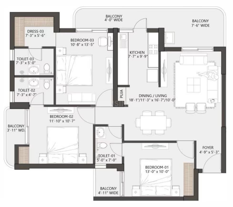 3 BHK | 1715 Sq.ft. | On Request | On Request | On Request |