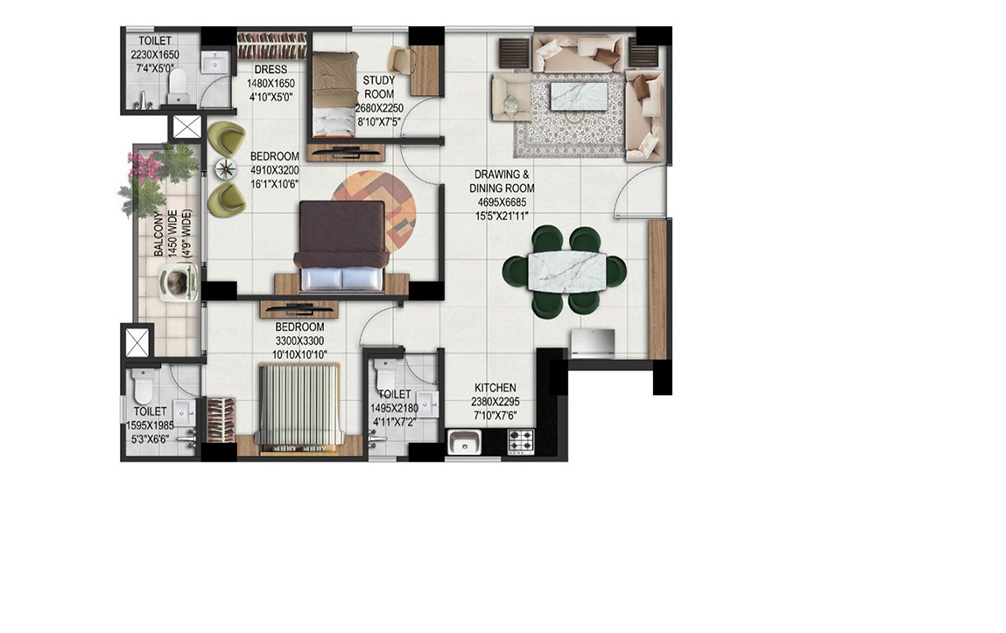 2 BHK | 966 Sq.ft. | On Request | On Request | On Request | |