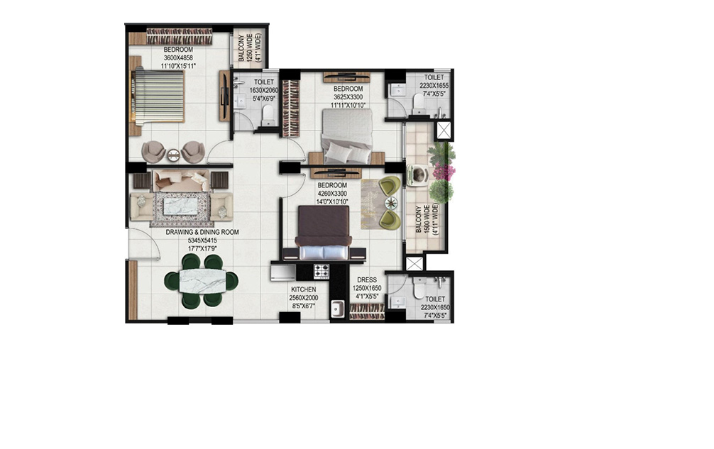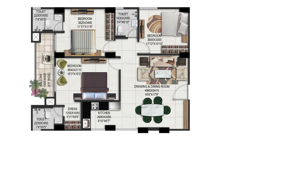 3 BHK | 1069 Sq.ft. | On Request | On Request | On Request | |