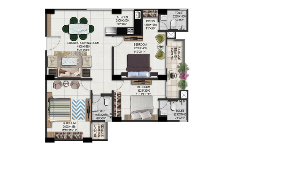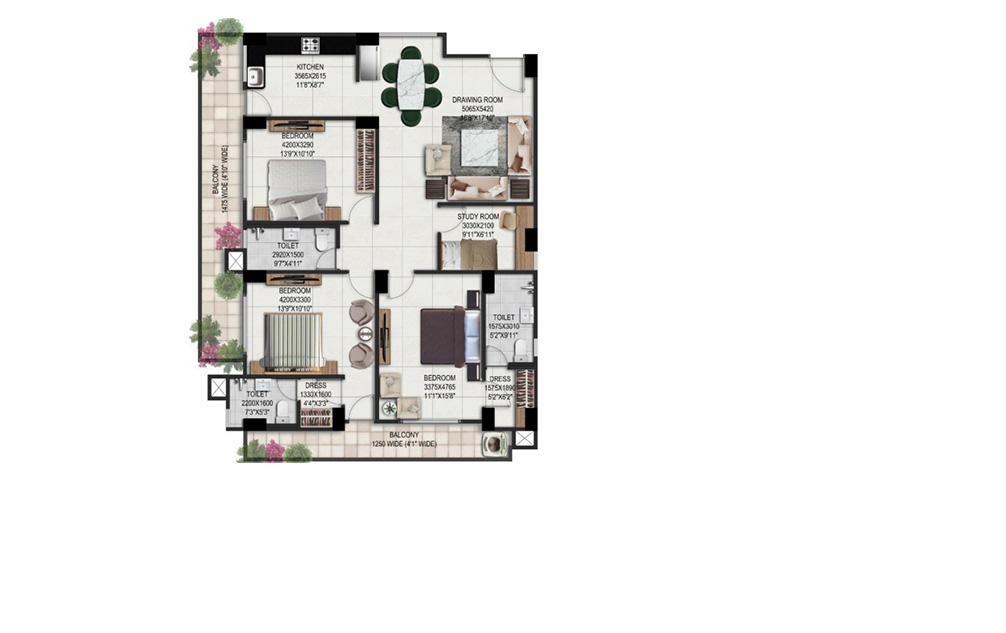 3 BHK | 1252 Sq.ft. | On Request | On Request | On Request | |
