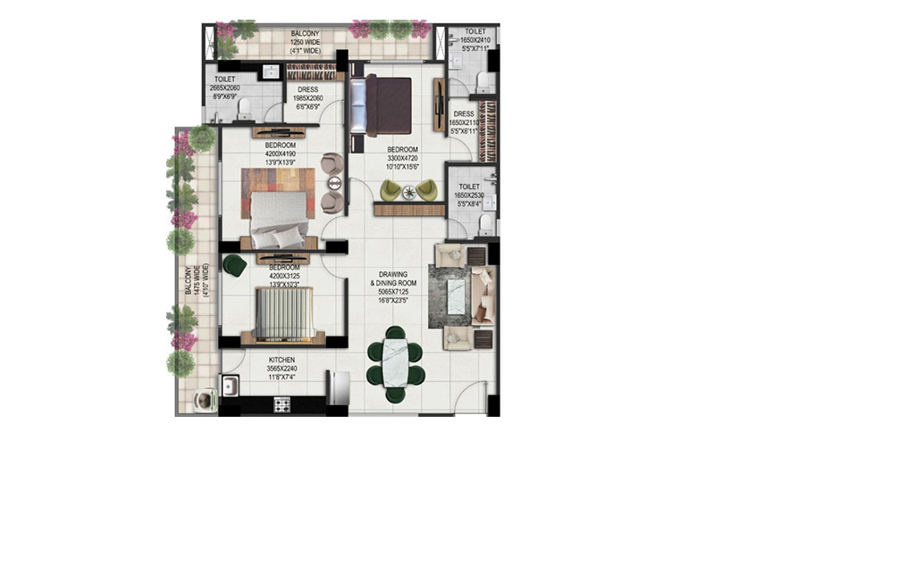 3 BHK | 993 Sq.ft. | On Request | On Request | On Request | |