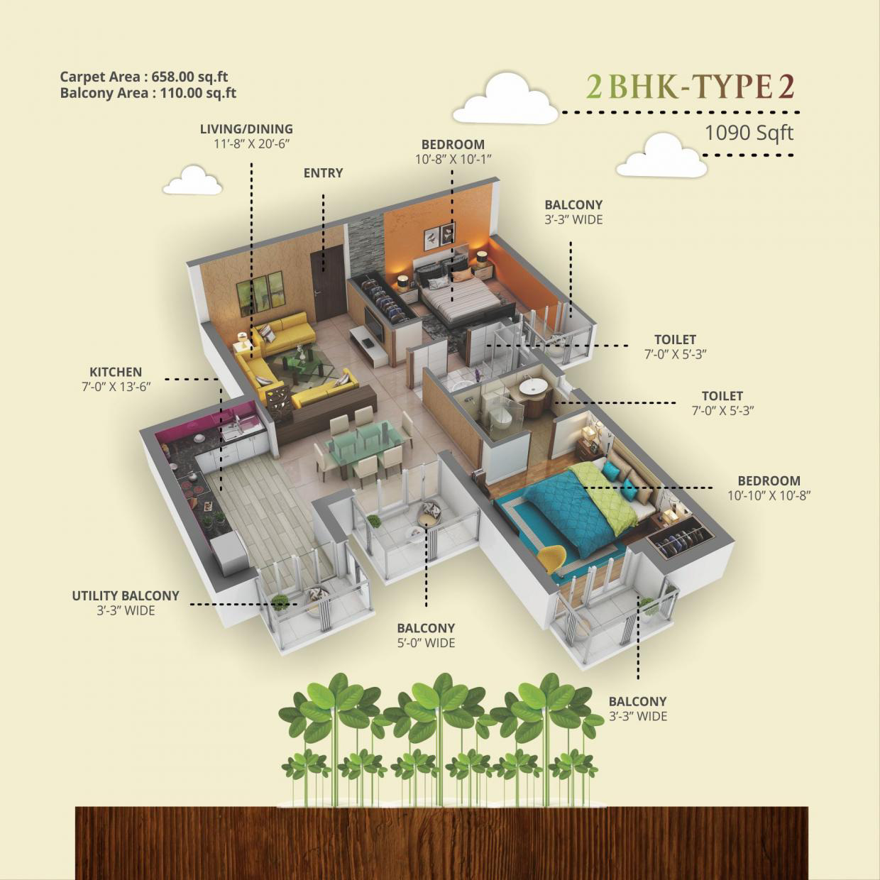 2 BHK | 1090 Sq.ft. | On Request | On Request | On Request | |