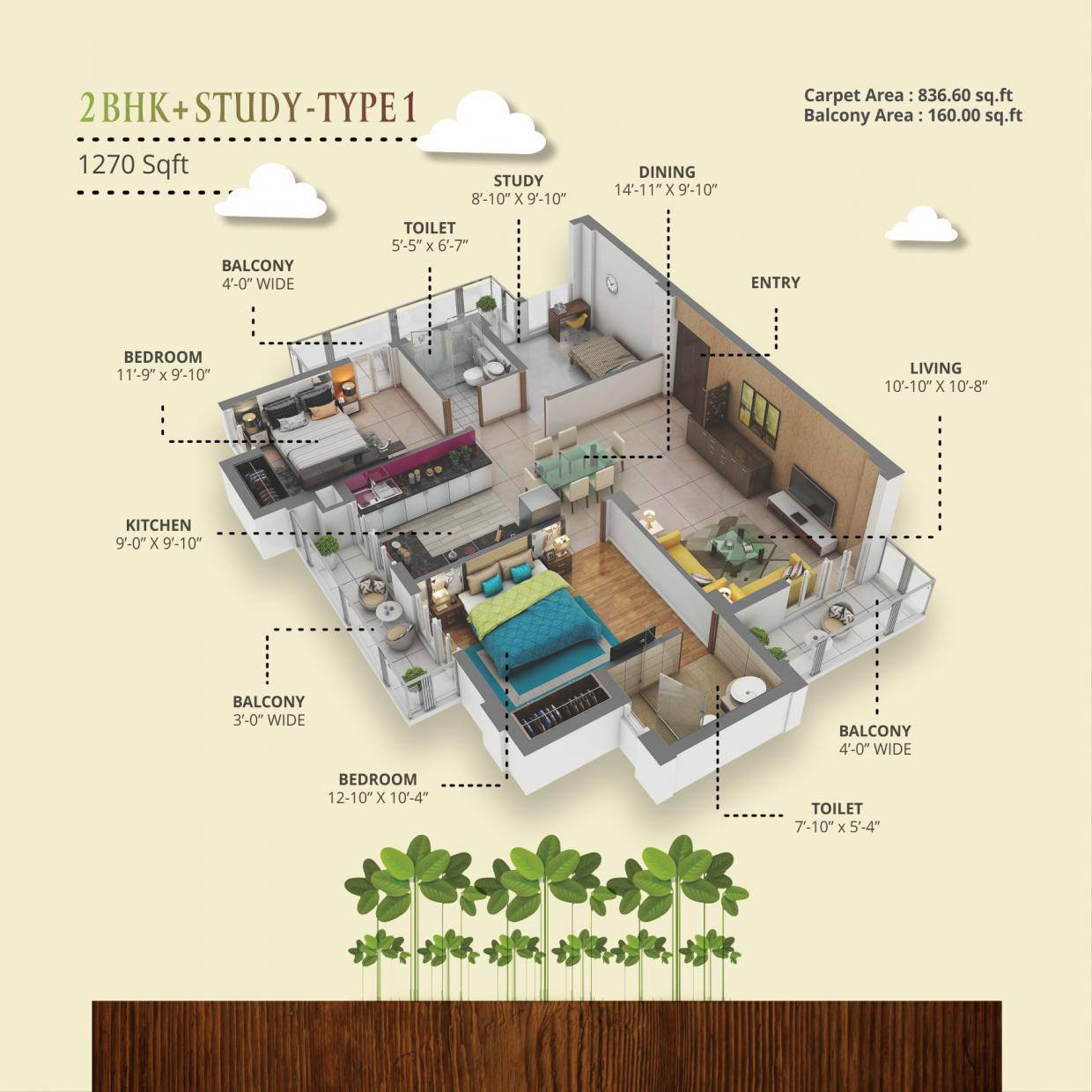 2 BHK | 1270 Sq.ft. | On Request | On Request | On Request | |