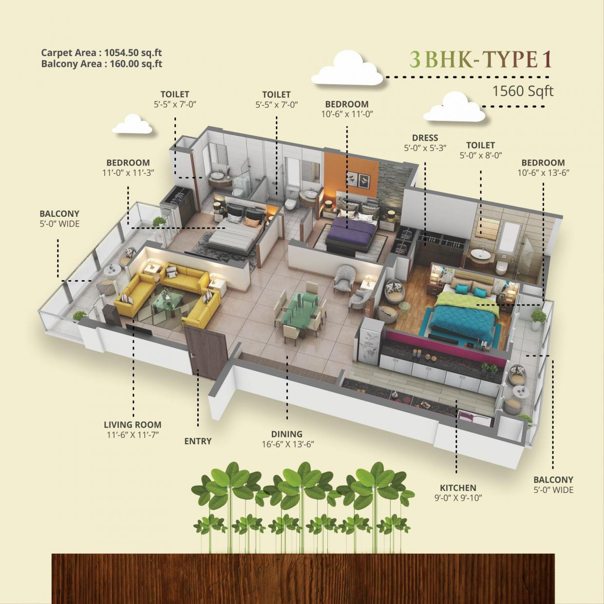 3 BHK | 1560 Sq.ft. | On Request | On Request | On Request |