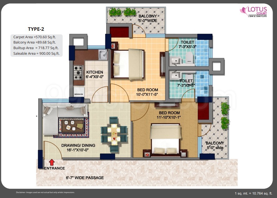 2 BHK | 570 Sq.ft. | On Request | On Request | On Request | |