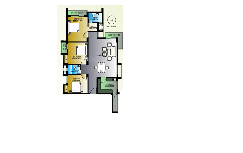 3 BHK | 1755 Sq.ft. | On Request | On Request | On Request | |