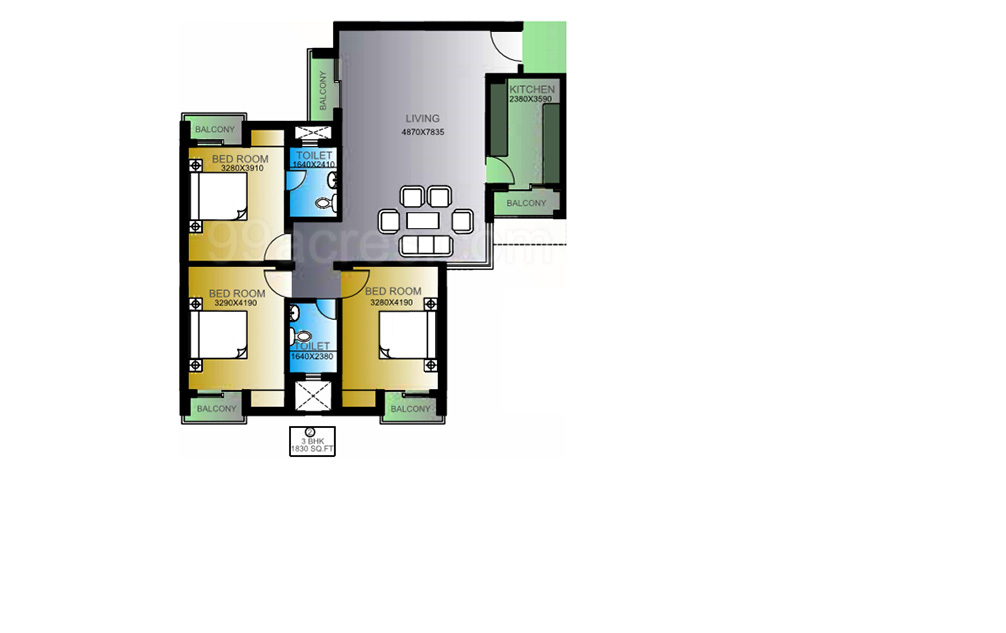 3 BHK | 1830 Sq.ft. | On Request | On Request | On Request | |