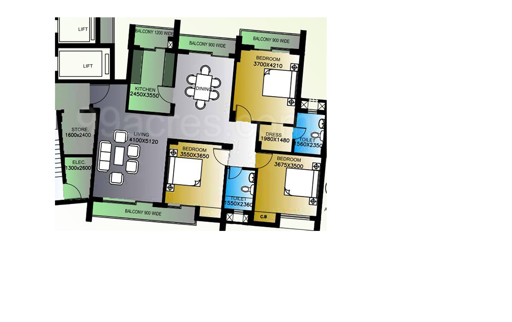 3 BHK | 1820 Sq.ft. | On Request | On Request | On Request | |