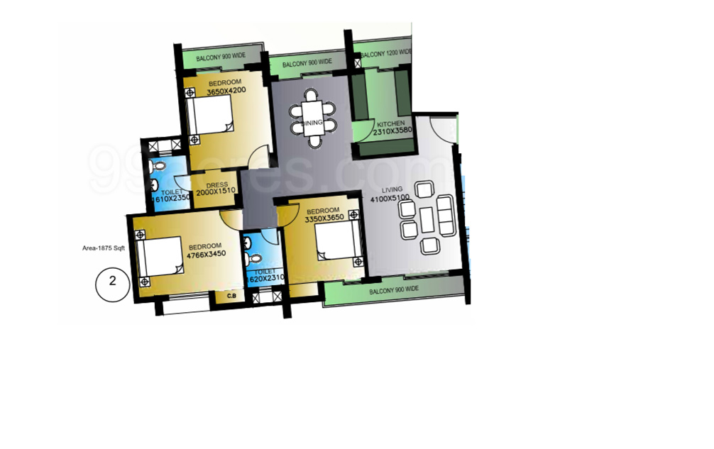3 BHK | 1875 Sq.ft. | On Request | On Request | On Request | |