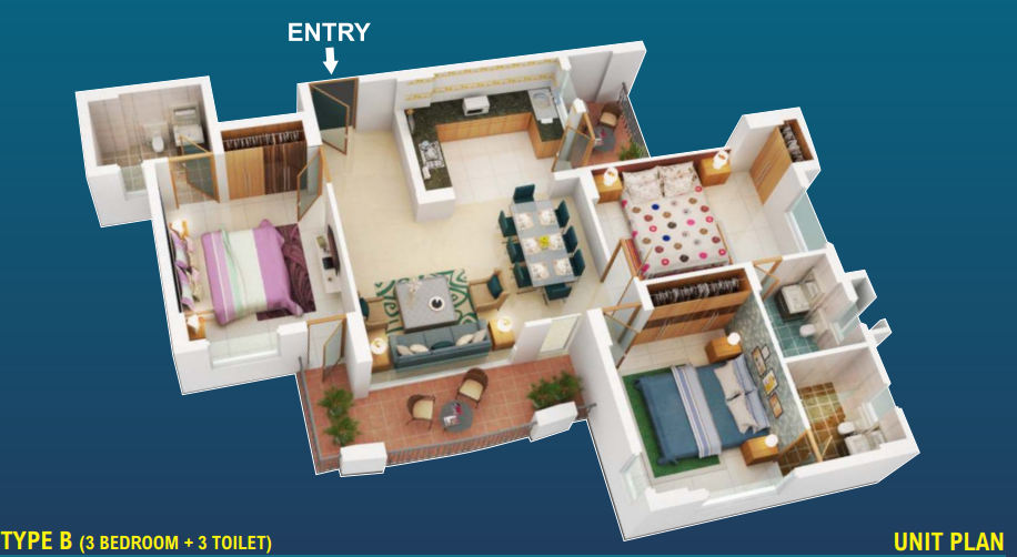 3 BHK | 1734 Sq.ft. | On Request | On Request | On Request | |