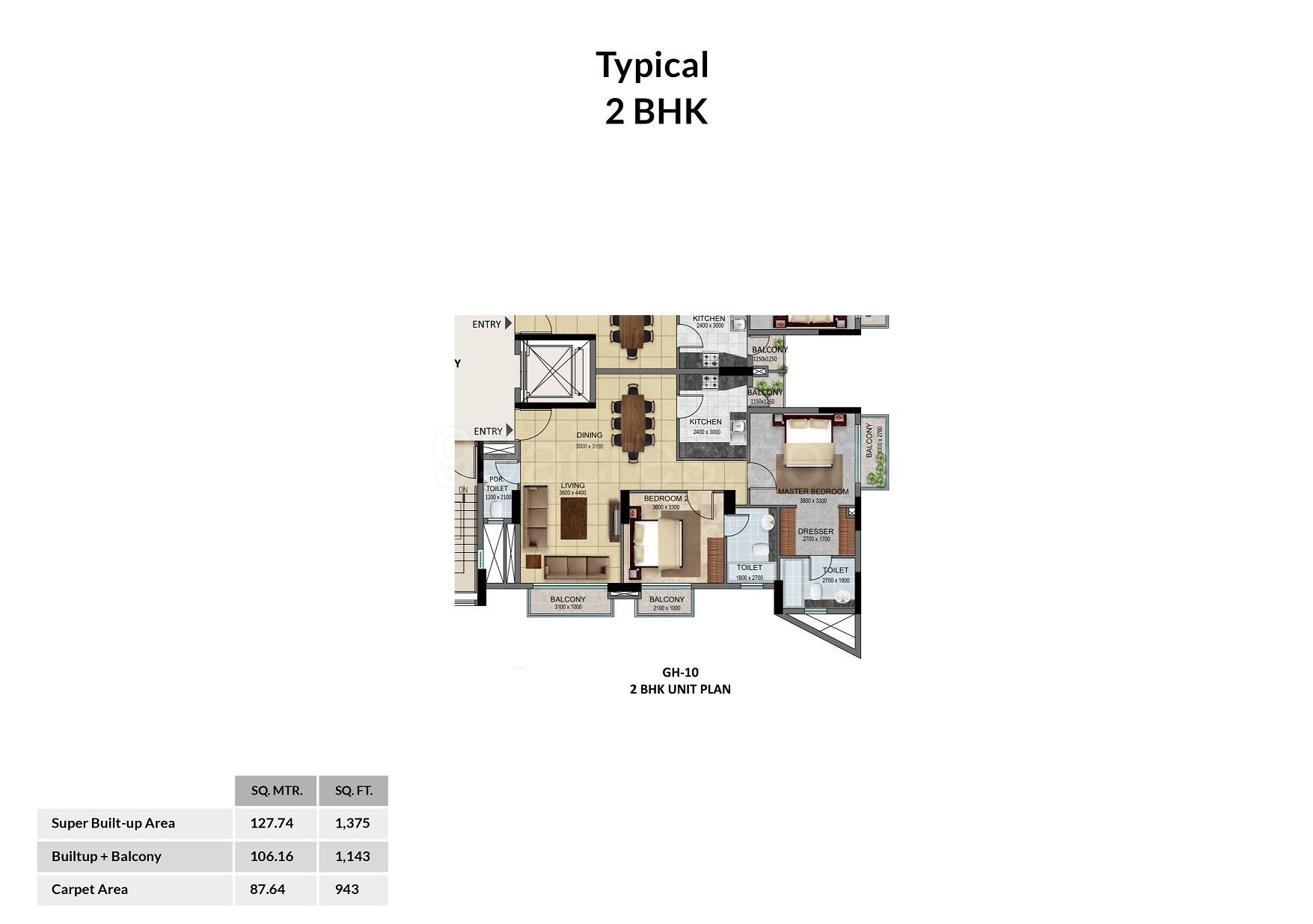 2 BHK | 1143 Sq.ft. | On Request | On Request | On Request | |