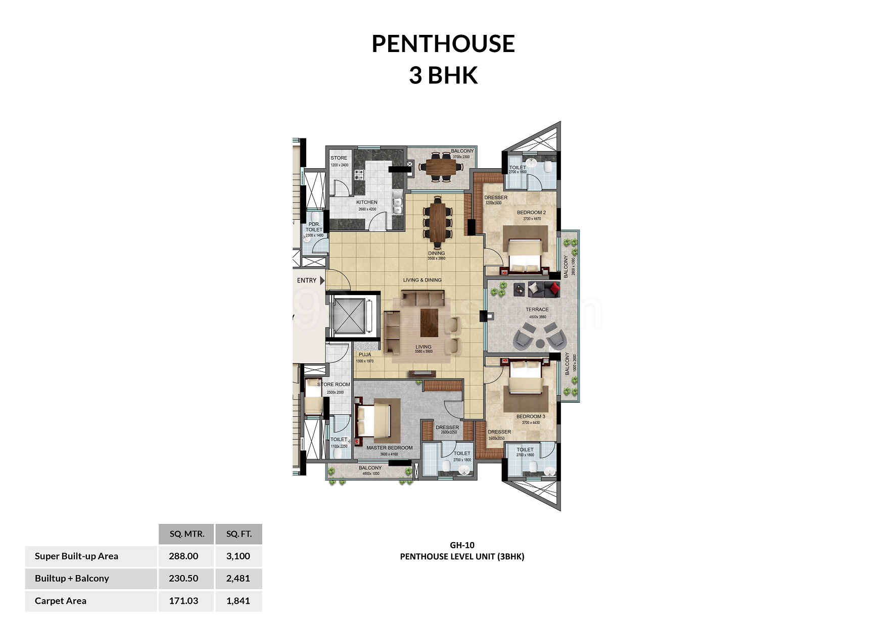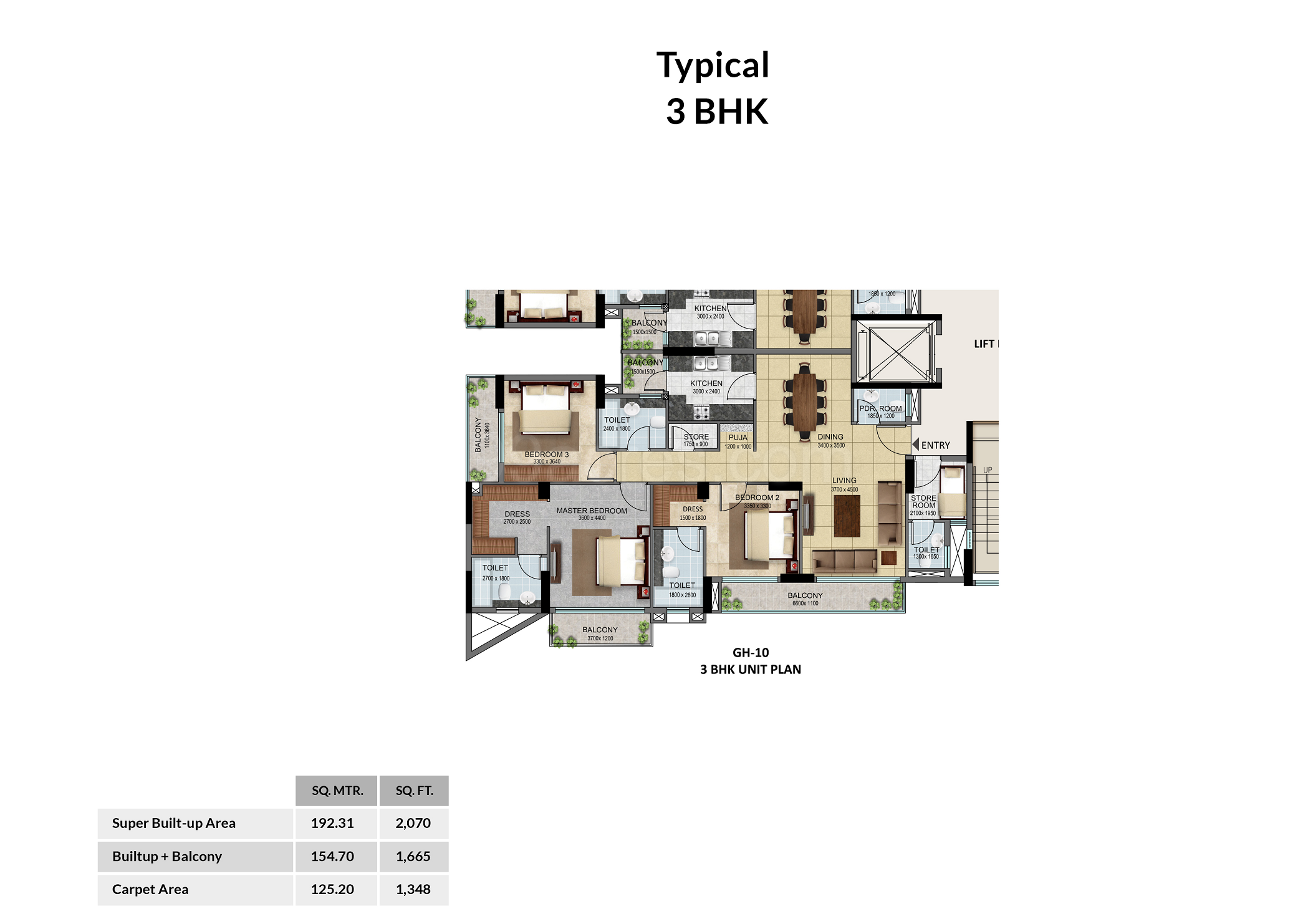 3 BHK | 1665 Sq.ft. | On Request | On Request | On Request | |