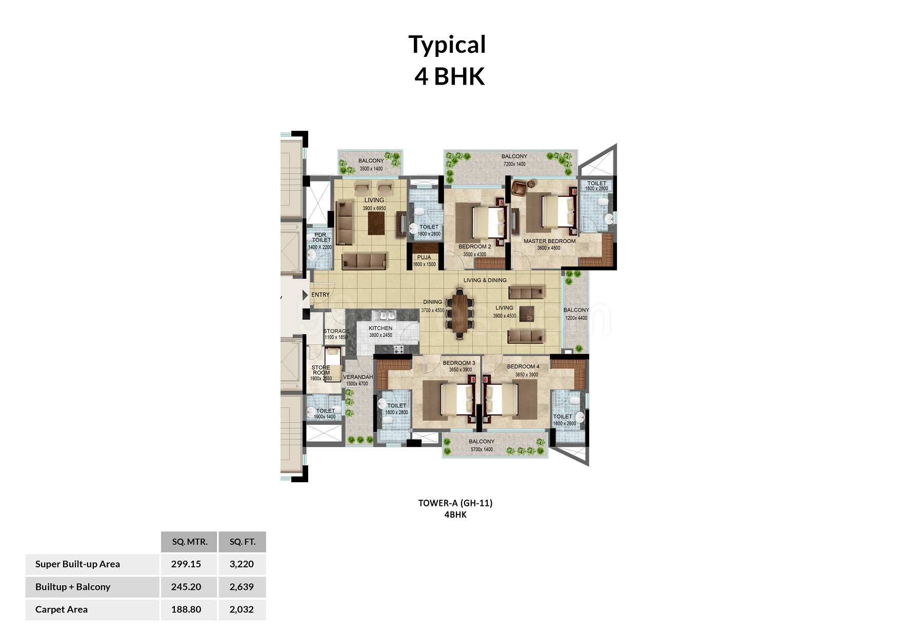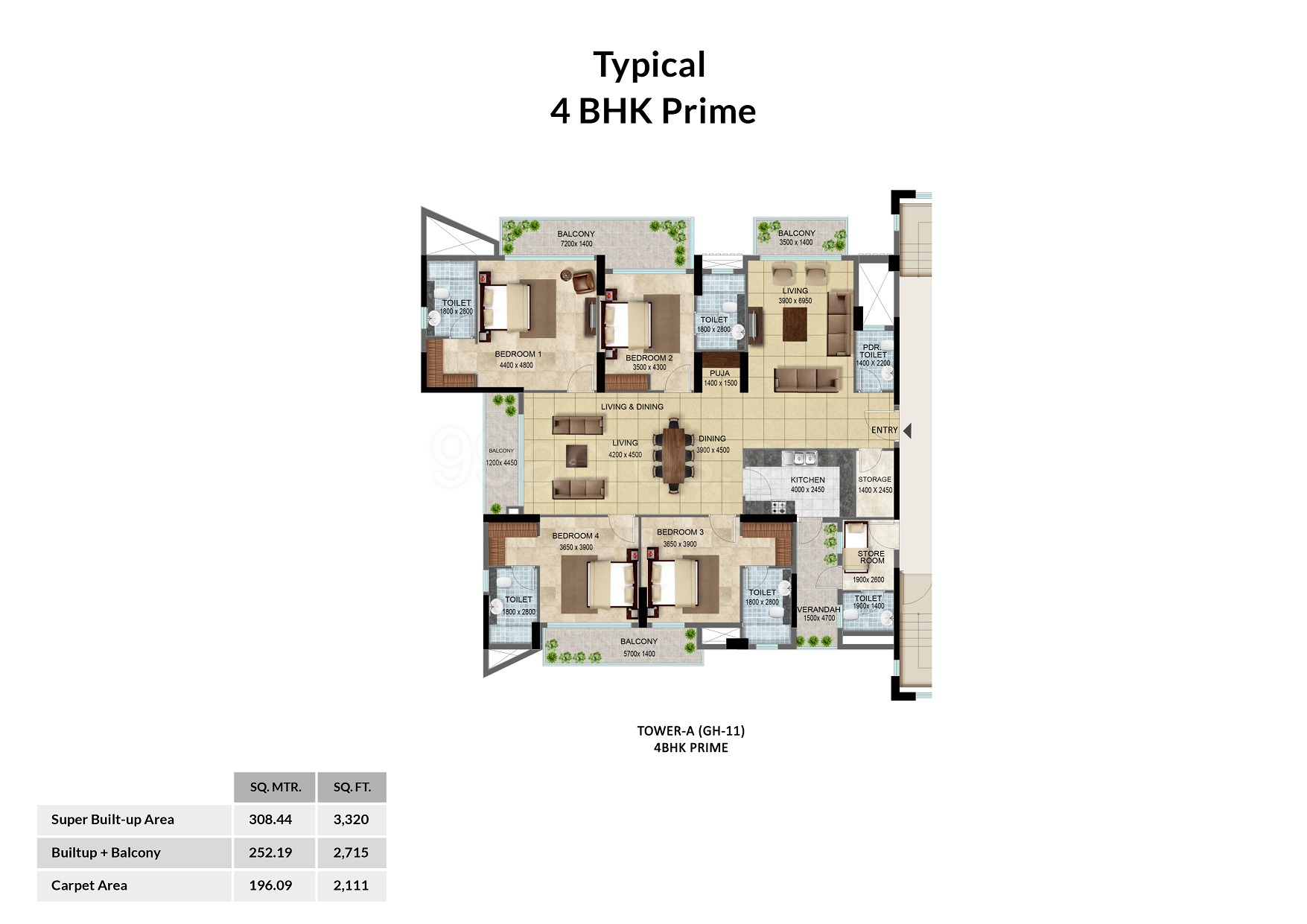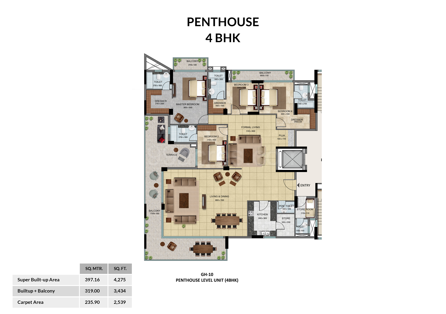 4 BHK | 3434 Sq.ft. | On Request | On Request | On Request | |