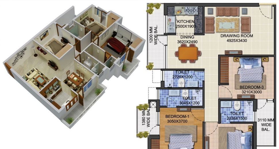 3 BHK | 1620 Sq.ft. | On Request | On Request | On Request | |