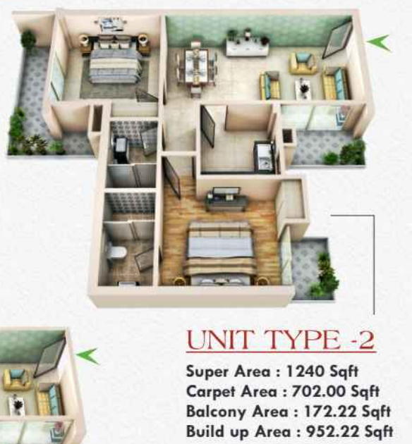2 BHK | 1240 Sq.ft. | On Request | On Request | On Request | |