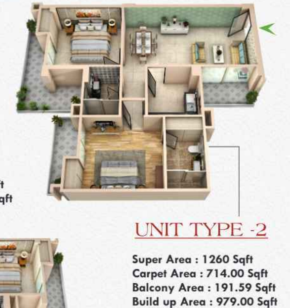 2 BHK | 1260 Sq.ft. | On Request | On Request | On Request | |