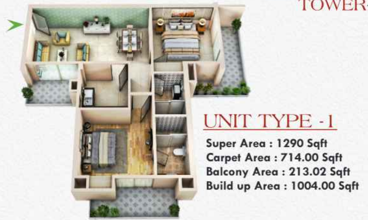 2 BHK | 1290 Sq.ft. | On Request | On Request | On Request | |