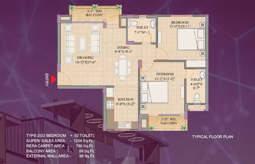2 BHK | 1204 Sq.ft. | On Request | On Request | On Request |
