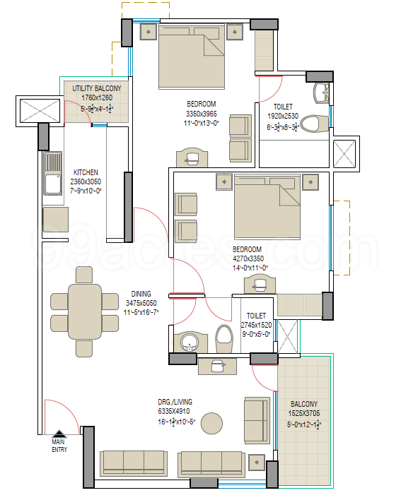 2 BHK | 915 Sq.ft. | On Request | On Request | On Request | |