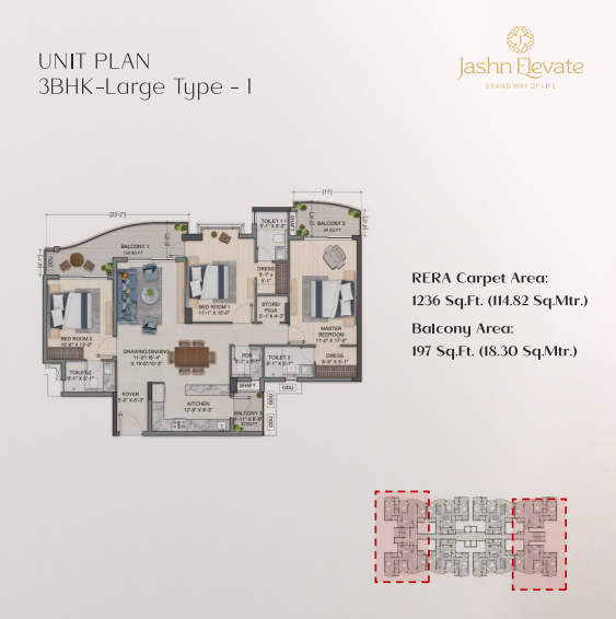 3 BHK | 1236 Sq.ft. | On Request | On Request | On Request | |