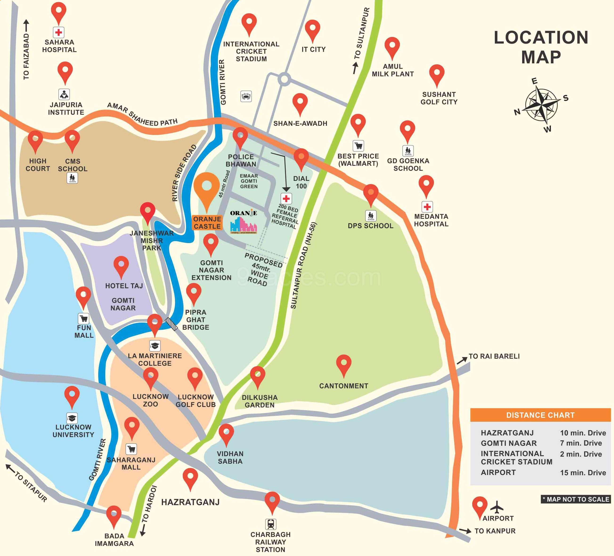 Gomti Nagar is well-connected to other parts of city by road, which passes through the heart of this suburb. Prominent shopping malls, movie theatres, school, and hospitals are present in proximity of this residential project.