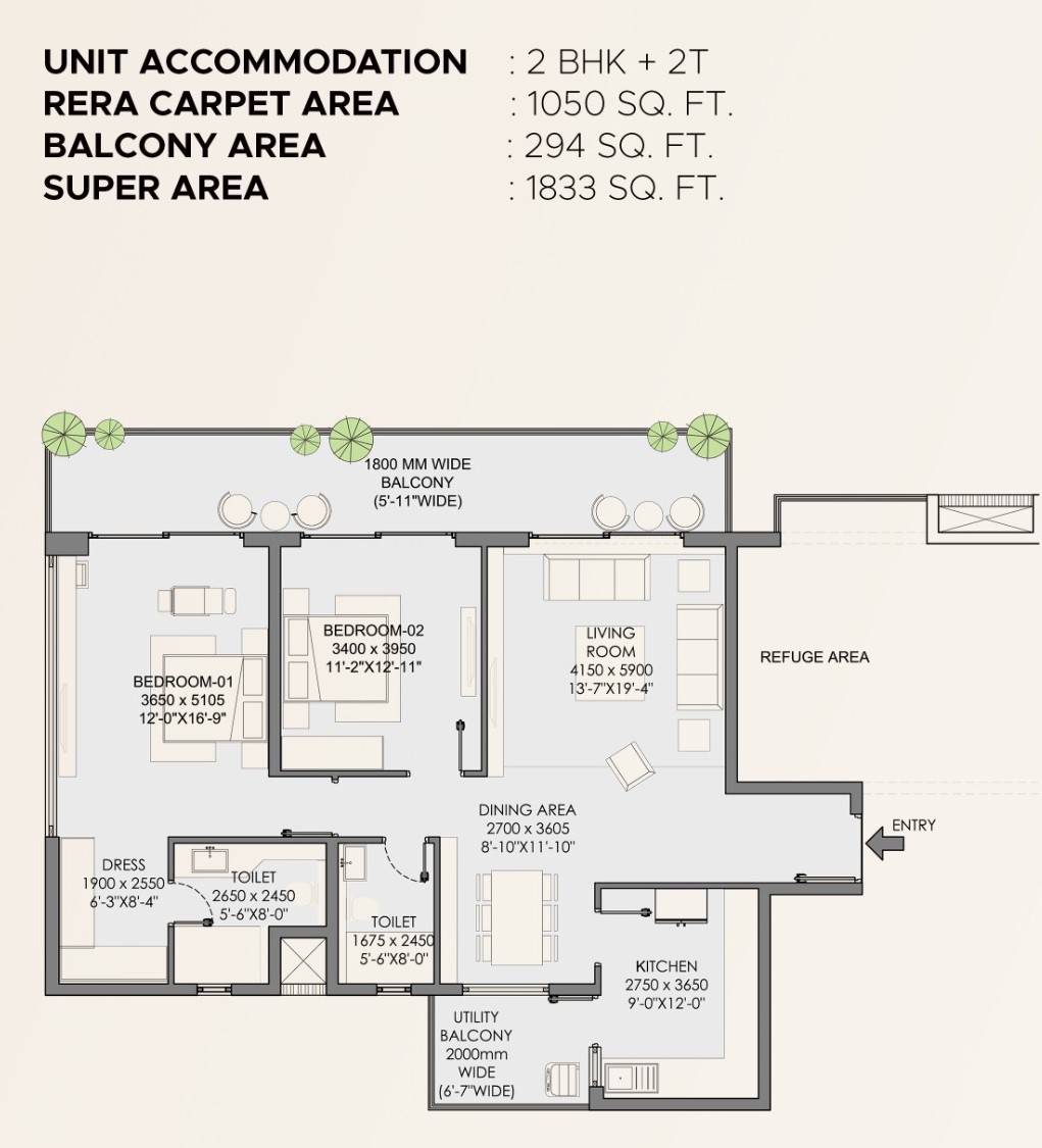 Unit Type | Size (SQ. FT.) | Price (SQ. FT.) | Amount | Booking Amt | Video |