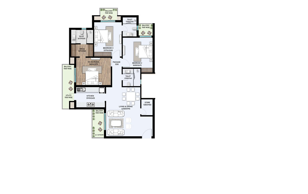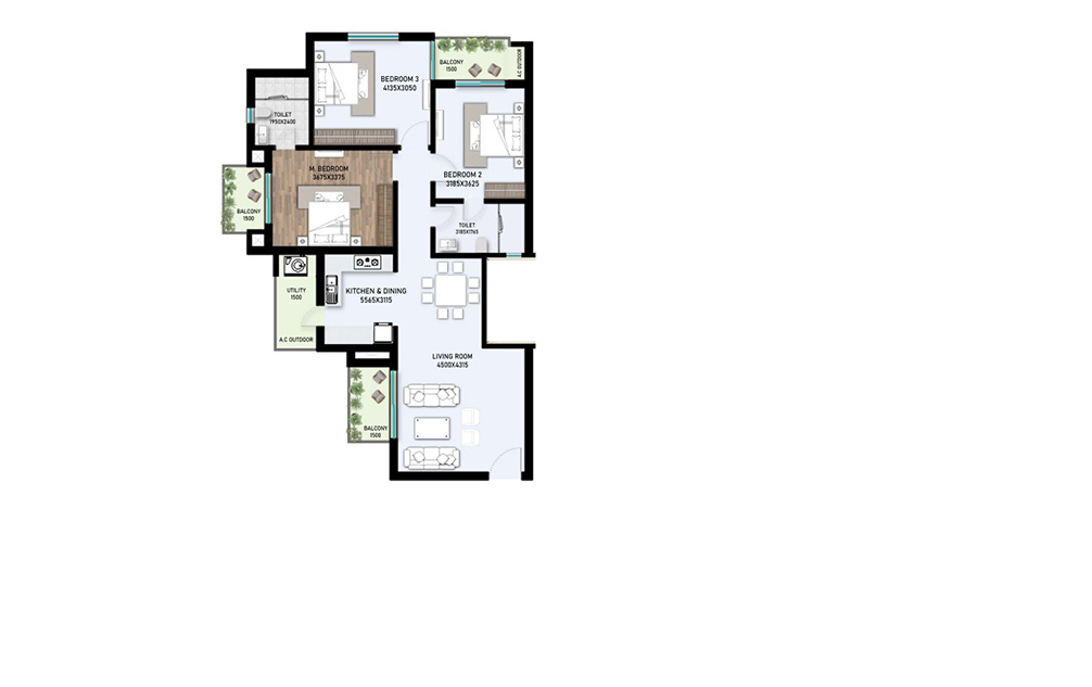 3 BHK | 1175 Sq.ft. | On Request | On Request | On Request | |