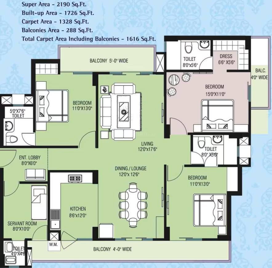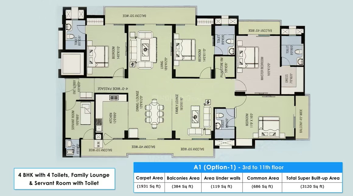 4 BHK | 3120 Sq.ft. | On Request | On Request | On Request | |