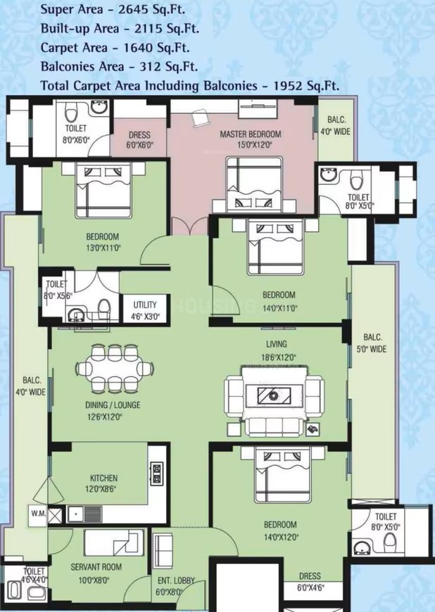 4 BHK | 2645 Sq.ft. | On Request | On Request | On Request | |
